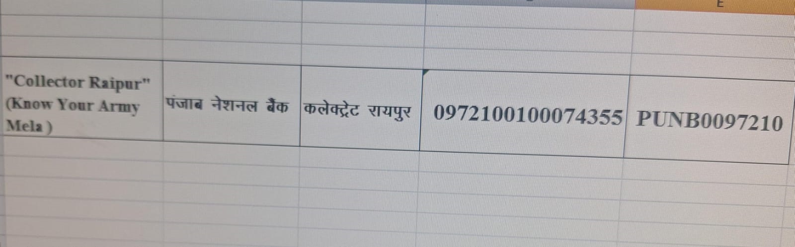 Know Your Army Mela- Collector Raipur Bank Account Details